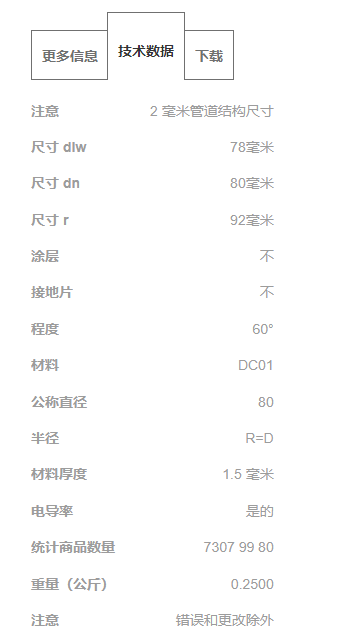 KMH 管道弯头60°DN 80x1.5 毫米系列